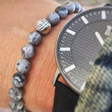 Bracelet Globe 'Monde' Perles en Pierres fines (semi précieuses) monté sur fil élastique, confectionné à la main dans nos ateliers à Cannes.