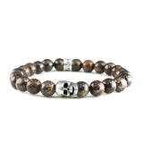 Bracelet Skull en Pierres fines (semi précieuses)monté sur fil élastique, confectionné à la main dans nos ateliers à Cannes.