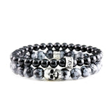 Bracelet Duo Skull Snow Flake - Onyx Poli et argent