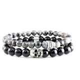 Bracelet Skull Duo en Pierres fines (semi précieuses)monté sur fil élastique, confectionné à la main dans nos ateliers à Cannes.