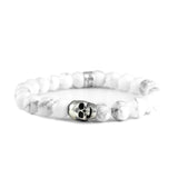 Bracelet Skull en Pierres fines (semi précieuses)monté sur fil élastique, confectionné à la main dans nos ateliers à Cannes.