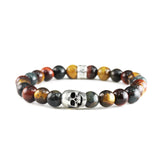 Bracelet Skull en Pierres fines (semi précieuses)monté sur fil élastique, confectionné à la main dans nos ateliers à Cannes.