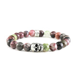 Bracelet Skull en Pierres fines (semi précieuses)monté sur fil élastique, confectionné à la main dans nos ateliers à Cannes.