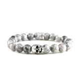 Bracelet Skull en Pierres fines (semi précieuses)monté sur fil élastique, confectionné à la main dans nos ateliers à Cannes.