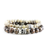 Bracelet Skull Duo en Pierres fines (semi précieuses)monté sur fil élastique, confectionné à la main dans nos ateliers à Cannes.
