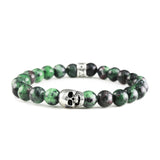 Bracelet Skull en Pierres fines (semi précieuses)monté sur fil élastique, confectionné à la main dans nos ateliers à Cannes.