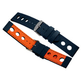 Bracelet de montre Racing en cuir bleu de grande qualité avec doublure de couleur orange
